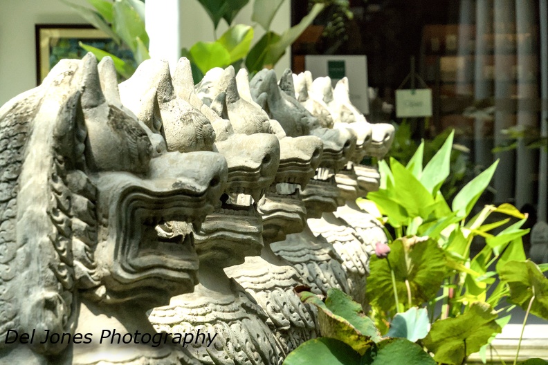 Dragons standing guard at the Plantation hotel, Cambodia