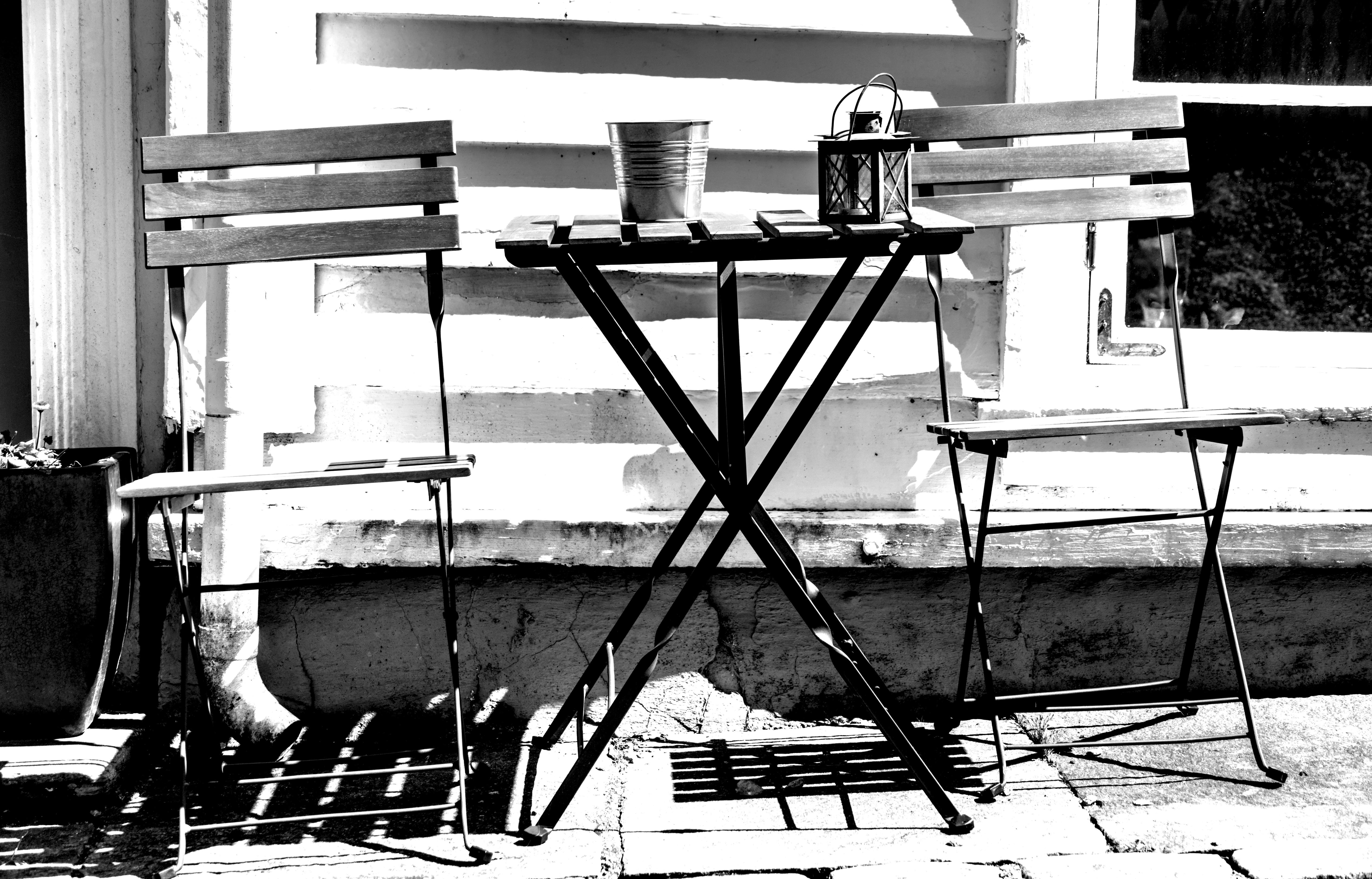 Table and chairs for two in the old town of Stavanger, Norway